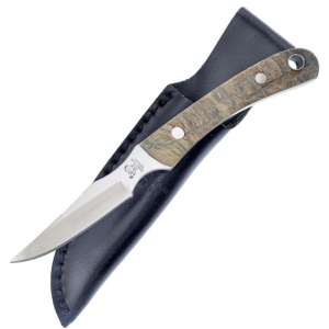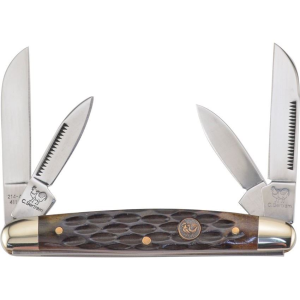 Hen & Rooster I030 Four Piece Jumbo Steak Knife Set with Triple Riveted Brown Wood Handle