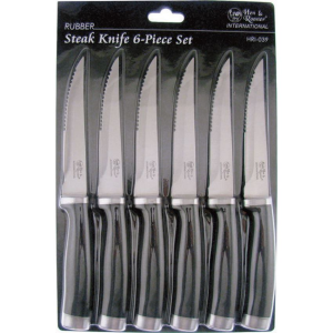 Hen & Rooster I039 Hen & Rooster International 6 Pc Steak knife Set with Black Contoured Rubberized Handle